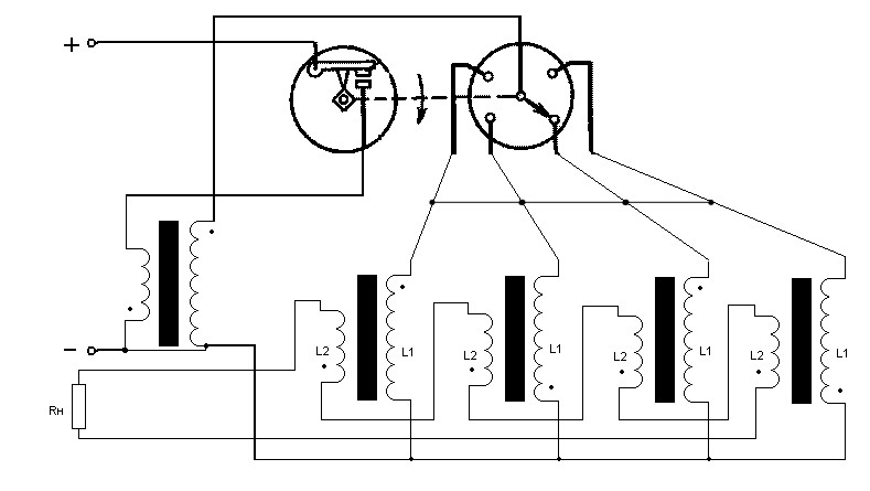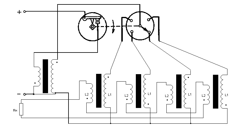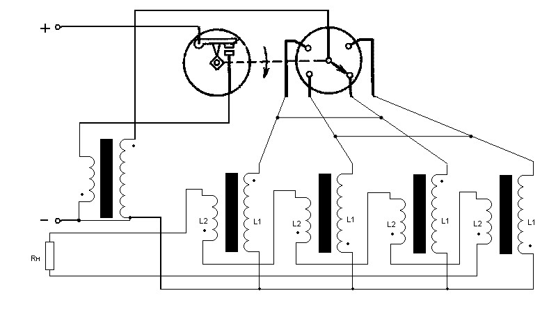 | Цыфрами отметил точки соединения. Буквами - пересечение. Еще раз просмотрел схему - не вижу разрыва. Добавлено (08.02.2011, 15:58) --------------------------------------------- Quote (Макс) да ещё пометь север юг на кернах или просто добейся чтоб север юг на втором и 4том керне в момент искры были другими нежели на 1 и 3 Для этого я поставил точки возле каждой катушки. Они обозначают начало катушки. Какраз так и чередуются 1-3 и 2-4 на ВВ.